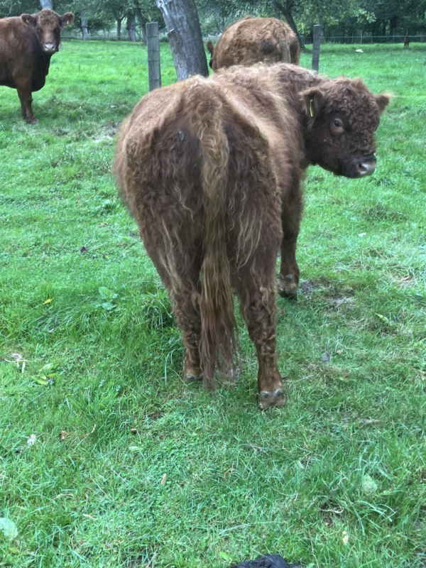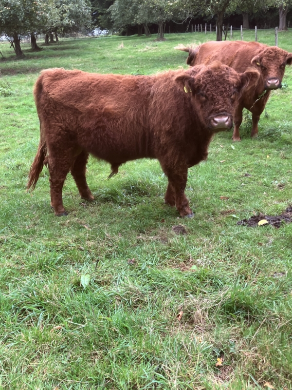 Wir bieten Leo als gut einjährigen Absetzerbullen zum Kauf an. Seine Eltern Leon aus dem Holperdorper Tal (888) und Erna v. Felde (877 - Tochter von Xantos) sind großrahmige eingetragene Zuchttiere mit besten Pedigrees.
