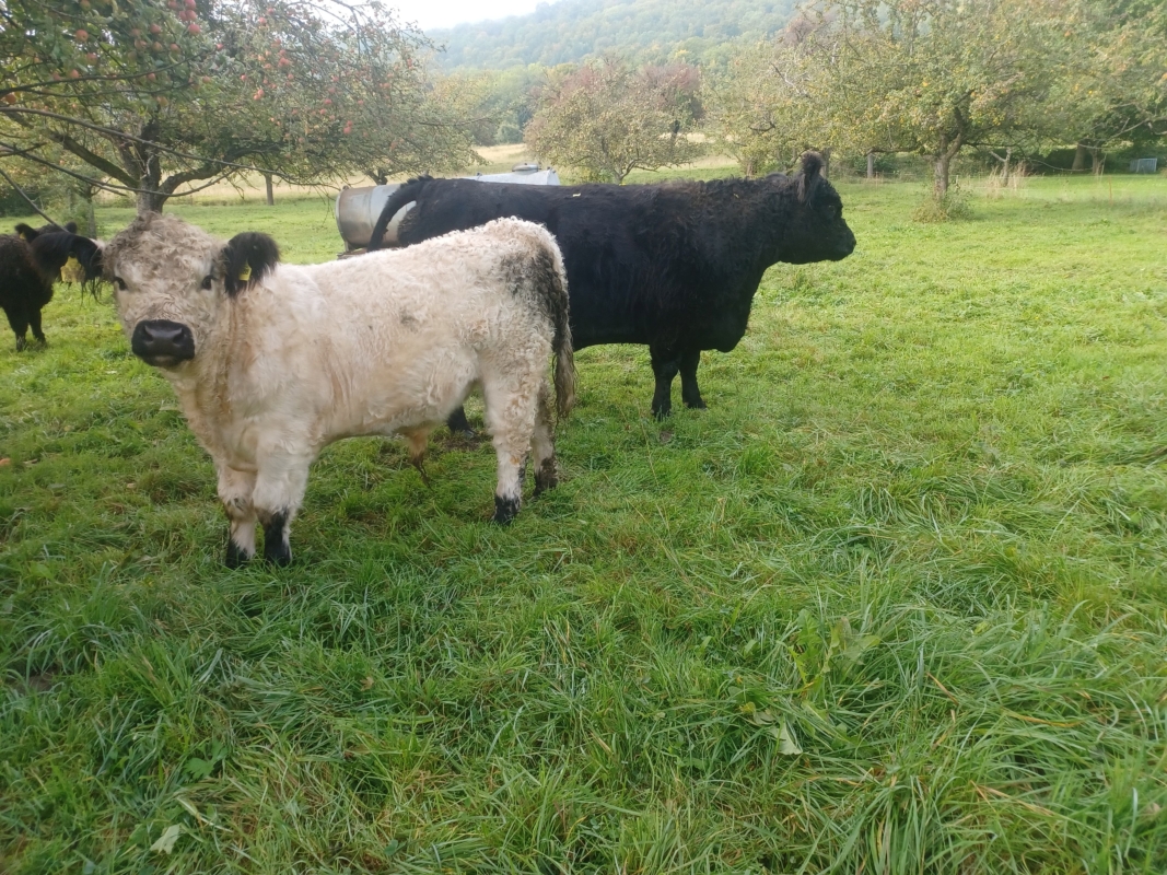 Sehr gut gezeichneter Jungbulle geb.12.2024, Vater: Bubi vom Sternenhof 8-8-8, Mutter: Garbe II 8-8-8 eine Doron-Tochter. Doron vom Bauernberg 9-9-8 steht an 1.Stelle der Zuchtwertschätzung der Galloways. Der Bulle ist korrekt, sehr gut entwickelt mit bester Bemuskelung. Elektrozaun und Treibwagen gewöhnt
