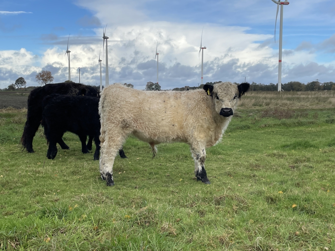 ich biete einen gut gezeichneten White Galloway Absetzer zum Kauf an. 'Dolmar vom Vogelsang' ist am 10.03.25 geboren und sehr umgänglich. Er stammt aus einem White Bullen 'Domingo vom Altrhein' und einer Rigget Kuh 'Molina vom Vogelsang', also Herdbuch A fähig.
