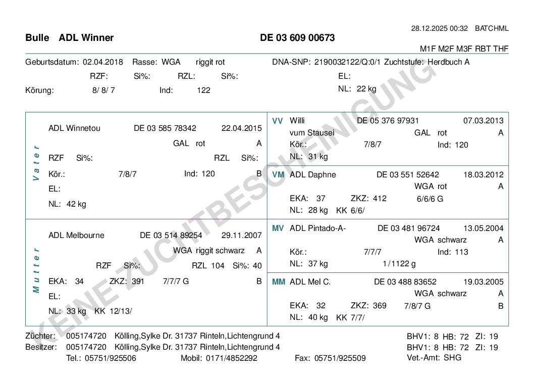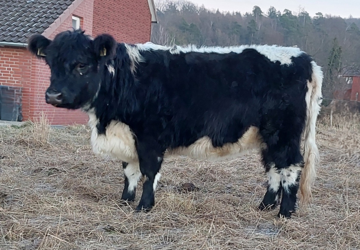 "Martini", perfekt gezeichnete black rigget Färse mit Rotfaktor, geb. 30.1.2022, tragend von "Winner", red rigget.