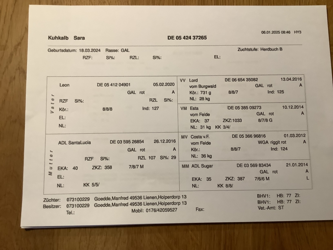 Wir bieten hier eine fast zweijährige Färse (3/26) zum Kauf an - passend zur bald beginnenden Weidesaison. Sara ist mittelrahmig einzustufen und altersgemäß entwickelt.
