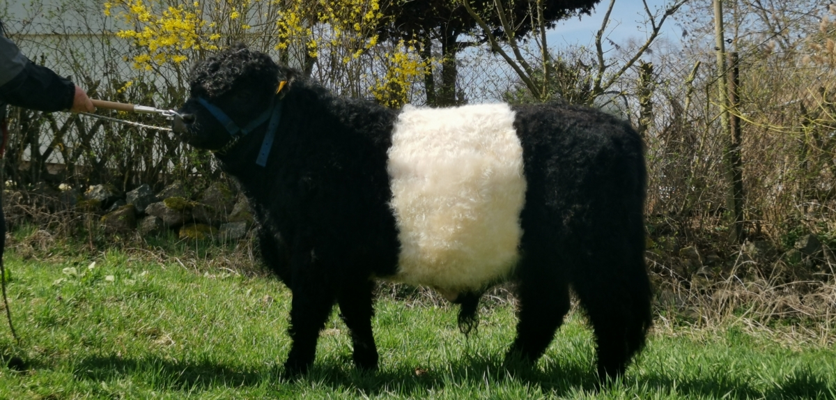 Deckfähiger rein belted gezogener Jungbulle zu verkaufen. Geboren am 23.03.25 Herdbuch, körfähig, mittelrahmig.