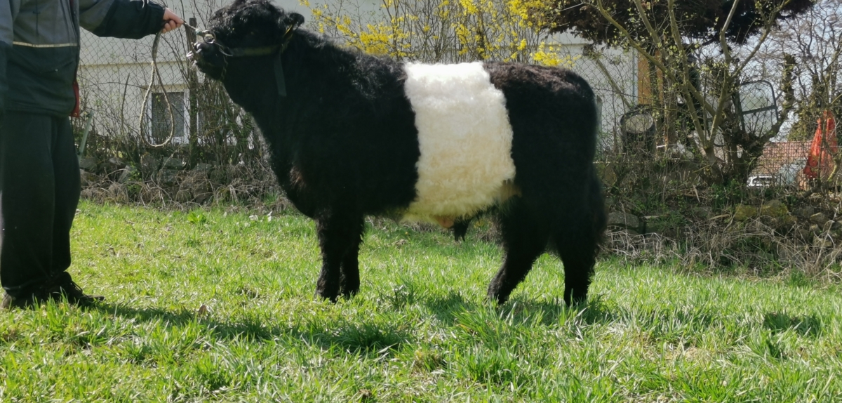 Deckfähiger rein belted gezogener Jungbulle zu verkaufen. Herdbuch, körfähig, mittelrahmig.
